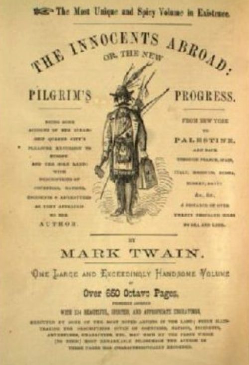 מארק טווין שער ספרו וציור תמונה קודמת תמונה הבאה שער ספרו של מארק טוויין. במרז ציור של המחבר בדמות תרמילאי.