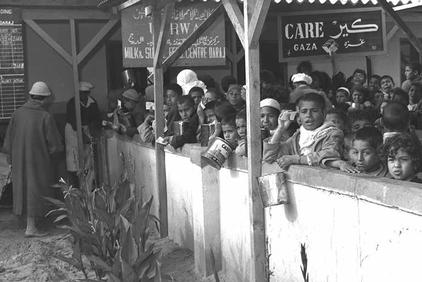 חלוקת חלב בעזה על ידי אונרא 1956 תמונה קודמת תמונה הבאה אונרא מחלק חלב לפליטים בעזה ב-1057. הוא ממשיך לחלק להם מזון גם ב-2009